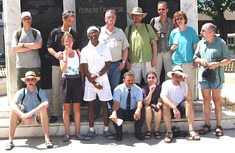 Gruppenbild mit Damen und Zigarren vor dem Céspedes- Denkmal.