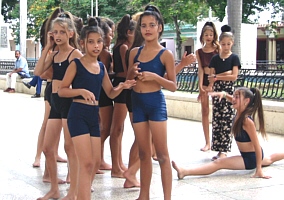 Auf dem Céspedes- Platz bereiten sich kleine Mädchen mit