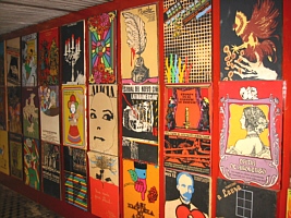 ist der Vorraum einer kleinen Bar über und über mit Filmplakaten