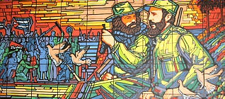 tapeziert, dazu Bilder von Camillo Cienfuegos,