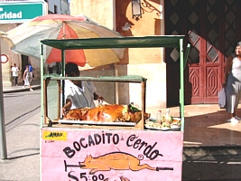 der Spanferkel- Stand. Cubaner lieben Schweinefleisch. In einer Nebenstraße