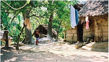 Bananenstauden, Kakteenzäunen, palmgedeckten Hütten. Die