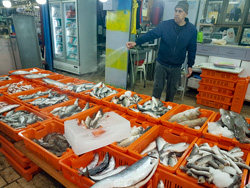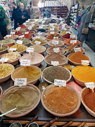 Akko hat heute ein arabisches Flair. Beim Streifzug im hiesigen Basar und Obst- und Gemüsemarkt tauchen wir in den Orient ein. Es gibt auch Fleisch und Fisch. Draußen regnet es "cats and dogs", aber die Gänge sind durchgehend überdacht. So wird der Markt bis auf wenige durchlässige Stellen vor der Sintflut beschützt.