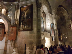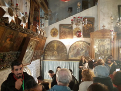Die Hauptanziehungspunkte innerhalb der Grabeskirche sind der Salbungsstein, eine Steinplatte, auf der Jesus Leichnam gesalbt worden sein soll, die Golgatakapelle, wo das Kreuz gestanden haben soll, und die Grabrotunde, die Grabhöhle, wo Jesus bestattet wurde und die am Ostersonntag leer aufgefunden wurde. Die heiligen Stätten werden von Gläubigen durch Berührungen, Küsse und Gebete verehrt. Die enorme Menschenmenge weckt in mir klaustrophobische Symptome, so dass ich den Komplex der Grabeskirche ziemlich schnell wieder verlasse.