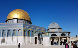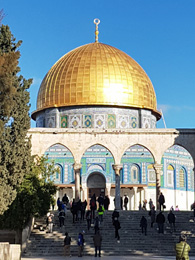 Der Felsendom ist ein Gebäude aus dem 7. Jahrhundert und für die Muslime eines ihrer wichtigsten Heiligtümer. Der Kuppelbau wurde über dem Felsen errichtet, auf welchem Abraham der Legende nach seinen Sohn zu opfern bereit war und von wo die Himmelfahrt Muhammeds stattgefunden hat. Der Felsendom ist immer als ein Schrein verstanden worden, nicht als Moschee. Deren Kuppeln sind im übrigen fast immer grün - die Farbe des Islam. Die jüngste Vergoldung der Felsendom-Kuppel hat Anfang der Neunziger Jahre der König der Haschemiten, Hussein I. von Jordanien, aus eigener Schatulle bezahlt.