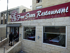 Zur Begrüßung sagt man in Israel "Shalom!" - Frieden! Unsere Reisegruppe wird ins 60 km entfernte Stadtzentrum von Jerusalem zum gebuchten Hotel Grand Court Jerusalem gebracht. Das riesige Touristenhotel - oder besser "Pilgerhotel" - hat 442 Zimmer und einen unglaublich weiträumigen Speisesaal, gerade so als müssten alle Gäste gleichzeitig bewirtet werden. Dagegen hat das Hotel eine vergleichsweise kleine Lobbybar. Es ist Samstag abend und der Sabbat ist zu Ende.
