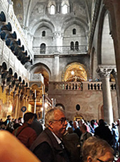 Der Via Dolorosa folgen wir weiter bis zur Grabeskirche im christlichen Viertel. An diesem Ort, wo Jesus ans Kreuz geschlagen und bestattet worden sein soll, kulminieren die christlichen Konfessionen. In über 30 Kirchen und Kapellen, möglichst nahe an die Grabrotunde gebaut, rangeln sie um die Vorherrschaft. Und ihre Vertreter, Priester und Mönche, benehmen sich untereinander und gegenüber den Gläubigen und Touristen als sei dieser Ort ihr Privatbesitz. Es soll sogar schon Schlägereien unter den Mönchen gegeben haben.