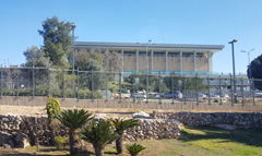 Auf der anderen Straßenseite steht das unspektakuläre Gebäude der Knesset, des israelischen Parlaments. 120 Abgeordnete sind jeweils für 4 Jahre gewählt, die Politik des 9 Mio.- Volkes zu bestimmen.