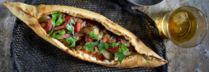 - mit Käse gefülltes Georgisches Fladenbrot (Chatschapuri)