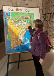 Die Besiedelung der Region begann vor 7.000 Jahren. Zur Zeit der Kreuzfahrer war diese Stadt mit ihren riesigen Befestigungsmauern das Tor zum Heiligen Land. Man findet in Akko die schönsten Ausgrabungen aus dieser Zeit. Die imposante unterirdische Kreuzfahrerfestung gehört zum UNESCO-Welterbe. Sie war das Hauptquartier des Johanniterordens, hier "Hospitaliterorden der Ritter des Hl. Johannes" genannt. Vor Ort wundern wir uns, wer denn wohl die Hospitaller oder Hospitaliter gewesen sein könnten. Beide Namen sind uns kein Begriff - und Rahel löst das Rätsel nicht auf.