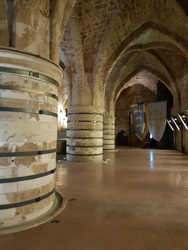 Auf dem Rückweg nach Tel Aviv fahren wir in das Karmel- Gebirge, einen Nationalpark, der wegen seiner üppigen Vegetation und dem milden Klima als Naherholungsgebiet der Israelis gern genutzt wird. Hier in den Bergen (eher Hügeln) liegt die Tulip Wein-Kellerei, in der wir 5 israelische Spitzen- Weine aus eigener Produktion verkosten. Bis auf einen Syrah sind es Cuvées. Dazu wird ein wenig Käse und frisches Brot gereicht. Das Flagschiff unter den Tulipweinen ist der "Black Tulip", eine Cuvée aus Cabernet Sauvignon, Merlot, Cabernet Franc und Petit Verdot von sehr alten Reben, dessen 2012er Jahrgang mit 92 Parker- Punkten ausgezeichnet wurde. Der aktuelle Jahrgang kostet 62 € pro Flasche und wird aus verständlichen Gründen nicht zur Verkostung angeboten.