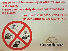 Festgestellt habe ich, dass Israel für uns Deutsche teuer ist, jedenfalls liegen die Preise in den Hotels und Gaststätten weit über unserem Niveau. Für 0,5 l Bier zahlt man umgerechnet 8,00 €, ein Glas Wein dto., eine kleine Flasche San Pellegrino 4,00 €, Fish & Chips 20,00 € usw.