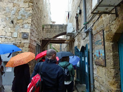 Wir verlassen den Tempelberg und begeben uns auf die weltbekannte Via Dolorosa, den nach dem Leidensweg Jesus benannten Prozessionsweg über 14 Stationen, der über mehrere Straßen durch das muslimische Viertel führt.