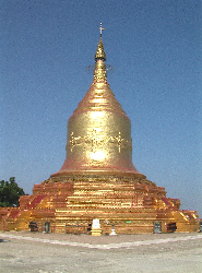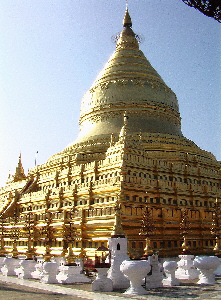 Am Nachmittag besuchen wir die Shwezigon Pagode, die "Mutter aller Pagoden". Das massive vergoldete Bauwerk ist ca 900 Jahre alt. Die elegante Glockenform des Stupas wurde zum Prototyp aller Pagoden in Myanmar. Auch hier wird natürlich eine heilige Buddha- Reliquie aufbewahrt, es ist ein Zahn.