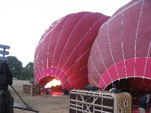 Der Tag beginnt mit der Erfüllung eines alten Traums. Ich werde mit einem Ballon fahren (nicht "fliegen"). Schon einmal bot sich mir die Möglichkeit, mit einem Heißluftballon über historisch bedeutsame Weltkultur- Stätten zu gleiten, es war das Tal der Könige in Ägypten. Damals hatte ich Sicherheitsbedenken. Hier in Bagan ist es anders. Die Ballonfahrer von "Balloons over Bagan" sind Voll- Profis! Piloten und Techniker wurden in England ausgebildet und zertifiziert. Das Material entspricht den höchsten internationalen Sicherheitsstandards und wird ständig geprüft, gewartet und erneuert.