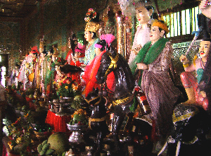 Nach einem schnellen Frühstück beginnt das Gruppenprogramm, ein wahrer Pagodenmarathon steht bevor - und das bei einer Temperatur von 34° C und 90 % Luftfeuchtigkeit. Wir fühlen uns schon am Vormittag wie gelähmt. Das Klima ist üblicherweise jetzt zum Ende der Regenzeit viel erträglicher. Die Leute erzählen, das derzeitige Wetter sei eine Folge von El Niño, dem zerstörerischen Klimaphänomen, das alle 3-7 Jahre Überschwemmungen und Dürren zur Folge habe. Das Wetter ändert sich dann teilweise dramatisch.
