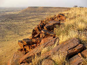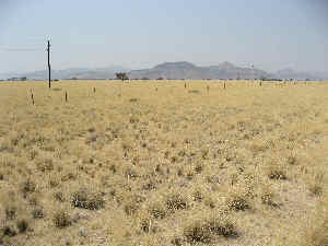 Vom Schwarzrand- Gebirge haben wir einen phantastischen Ausblick in die Ebene. Abends hat Gwen für uns "typisch deutsch" gekocht, sagt sie. Es gibt Kudu- Steaks mit Kartoffeln sowie reichlich Sauce und Gemüse. Wir sind und bleiben heute die einzigen Gäste auf der Farm. Insgesamt hat uns der Aufenthalt auf der Burgsdorffarm nicht gefallen. Die Zimmer waren klein und eng und nur spärlich möbliert, bei der Betreuung durch das Farmerehepaar blieb einiges zu wünschen übrig (lag vielleicht an Uwes Schnupfen...). Zudem bietet der Ort wenig bis gar nichts für die Freizeitgestaltung.