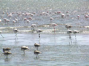 da nicht die Lagune wäre. Flamingos, Pelikane, Kormorane, Seeschwalben