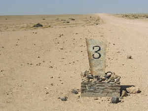 Weiter gehts durch eine endlose Sand- und Dünenlandschaft die Küste entlang nordwärts. Wir fahren mit Licht und das hat seinen Grund. Der hier herrschende heftige Wind bläst wahre Sandstürme über die Landschaft. Im Radio haben wir den lokalen Sender eingestellt. Rudi Carell singt "Wann wirds mal wieder richtig Sommer...". Kein Scherz!