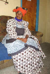 die Oberhaupt und Ratgeber der hiesigen Damara- Sippe ist. Sie erzählt