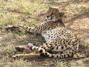 Freiland- Gehegen. Die Geparden ruhen sich bei unserem Besuch aus, liegen