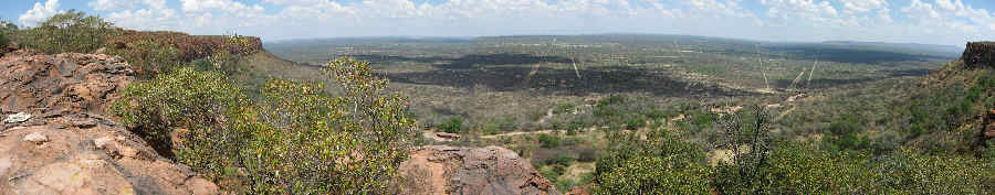 Okay, let´s go - wir nehmen den Aufstieg in Angriff. Doch es soll kein Zuckerschlecken und auch nicht "easy" werden. Es geht über Stock und Stein, große Felsbrocken und erhebliche Steigungen einen Kletterpfad bergaufwärts. Das ist kein Spaziergang, sondern fast alpines Bergsteigen! Dann haben wir endlich die Kante des Tafelbergs erreicht und werden mit einem grandiosen Ausblick über die endlos erscheinende Omaheke- Ebene belohnt. So etwas muss man lange auf sich wirken lassen.