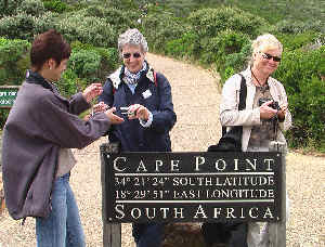Und noch etwas zum Kap: Hier soll es viele freche Paviane, Baboons genannt, geben, die auf den Parkplätzen und Wegen den Touristen auflauern und ihnen schon mal das eine oder andere Eßbare aus den Händen wegschnappen. Vor der Dreistigkeit dieser Kameraden wird sogar öffentlich gewarnt. Heute haben die Paviane aber wohl frei - oder keine Lust bei diesem Wind. Wir sehen nur einen einzigen Affen, der auf dem Dach eines Touristenwagens rumlümmelt.