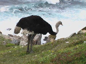 wir auf den Klippen auf ein Straußenpärchen, das sich diesen