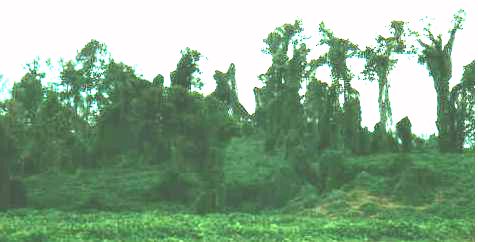 Keine Ampeln, keine Städte, insgesamt 450 Meilen lang von Natchez bis nach Nashville einem alten Indianer- Trail folgend. Bei der vorgeschriebenen Höchstgeschwindigkeit von 50 mph läuft man leicht Gefahr, am Steuer einzuschlafen, so monoton ist die Wald- und Parklandschaft. Wir biegen nach einiger Zeit ab Richtung Memphis. Die Landschaft ändert sich. Kudzu- Pflanzen, eine Art Kletter- oder Schlingpflanze, überwuchern Bäume und Sträucher, ja selbst Telefonmasten und -drähte. Die bis zu 20 m langen Ranken sollen pro Tag bis zu 30 cm wachsen! Es sieht wirklich unheimlich aus, wie ein alles überwuchernder lebender Teppich! Steven King läßt grüßen.
