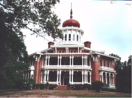 Am nächsten Morgen im Breakfast- Room des Motels: im grundsätzlich immer beim Frühstück laufenden Fernseher sehen wir den Weather Channel (übrigens auch eine web- Empfehlung!). Gerade hat ein Hurricane noch die Kurve vor den Südstaaten gekratzt. Glück gehabt. Wir besichtigen heute das Herrenhaus Longwood, ein 8- eckiges - und damit architektonisch einmaliges - Prunkgebäude mit einem orientalisch wirkenden Kuppeldach. Der Innenausbau der Villa kam nie über das Erdgeschoss hinaus. Der Bürgerkrieg hat den Materialnachschub verhindert. Die Fertigstellung ist auch vom heutigen Besitzer, dem Pilgrimage Garden Club, nicht beabsichtigt. Vielmehr soll das unvollendete Meisterwerk der Südstaatenarchitektur so als Symbol für das Ende des Bürgerkrieges bestehen bleiben. Die vielen Antebellum- Villen in Natchez können nur mit Führungen besichtigt werden. Dabei informieren die Guides über die ehem. Besitzer, die unglaubliche Schätze aus aller Welt zusammengetragen haben, von Möbeln über Bilder bis hin zu Geschirr und Vasen. Die Geschichten ähneln sich, so daß man sich bei der Besichtigung weiterer Häuser auf die Außenansicht beschränken kann. Wir schauen uns jedenfalls Stanton Hall, Linden und das gespenstische The Elms nur von außen an.